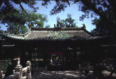 This is the rear elevation of the Xian dian (front hall). The bridge in the foreground connects to the Shengmu dian (main hall).