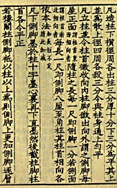 The corner columns are slanted away from the vertical and towards the centre of the building by a factor of 8/1000 in the long elevation and 1/100 in the short elevation. We assume that the slants of the other columns are interpolated in some way. One possibility is to have the centre lines of all columns meet in the intersection of centre lines of the corner columns. See the illustration in Liang (1984, 259). |