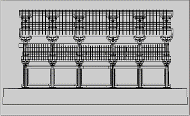 The model is five bays wide; the central bay is wider than the others. It has front and back porches (fujie); thus two roofs are visible.